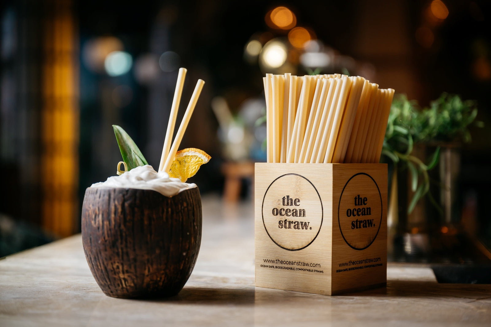 The Ocean Straw er et premium, bærekraftig sugerør laget i Spania av et fullt biologisk nedbrytbart, bærekraftig hentet tre- og plantebasert materiale fra Finland. Dette innovative materialet er utviklet som et bærekraftig alternativ til konvensjonell plast som PP eller PS, og som erstatning for PLA på grunn av raskere nedbrytning i naturlige miljøer.